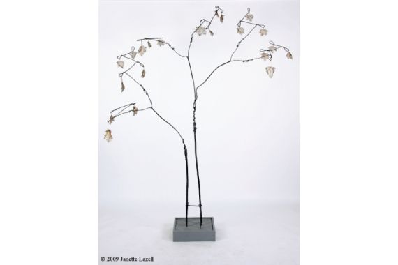 Forged mild steel tree with stainless steel leaves. Dimensions H.210cm W.200cm. D.40cm. Steel - 16mm, 10mm, 6mm.